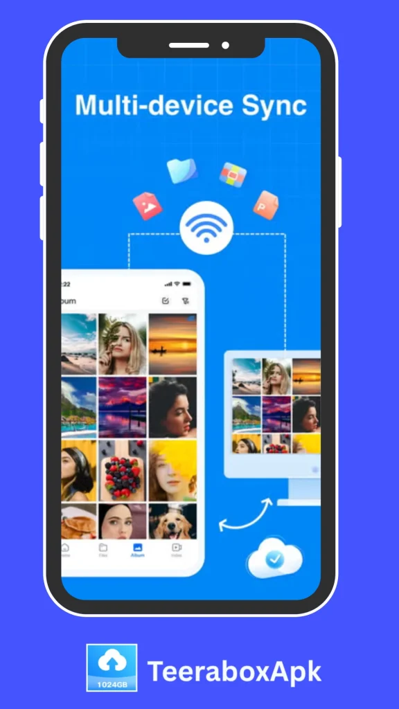 Terabox Mod Apk sync your account on iOS, Android, desktop, and web platforms for constant access and control anywhere.